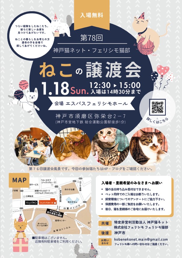 譲渡会専用メールアドレス kobe.nekonet@gmail.com